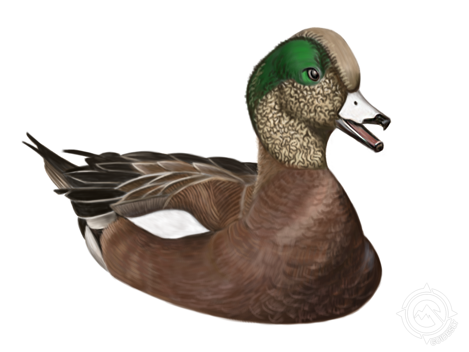 American Wigeon: These crafty dabblers are a favorite among our hunters. Known for their distinctive whistle, Wigeons are often found in mixed flocks with other puddle ducks. They're fast flyers and great eating, making them a prized addition to any bag. Look for them in shallow, vegetated areas where they feed on aquatic plants.